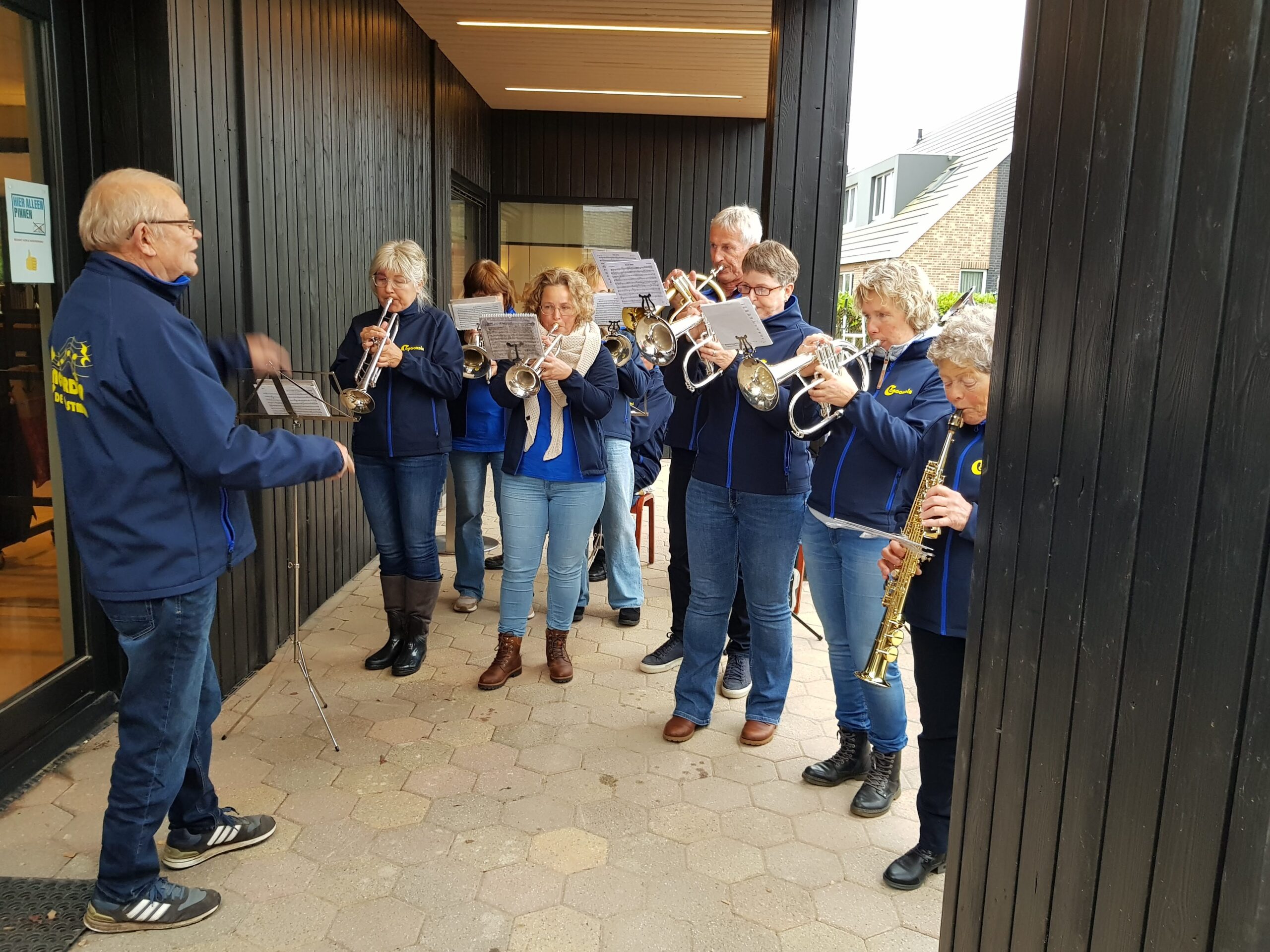 “Wolkom werom yn Ús Doarpshûs “, staat er op het uitgerolde doek te lezen. Het Frysk Folksliet wordt gespeeld en gezongen en hierna gaan alle belangstellenden naar binnen. Daar neemt Amber Hermsen op piano de muzikale omlijsting van Concordia over, prachtig.