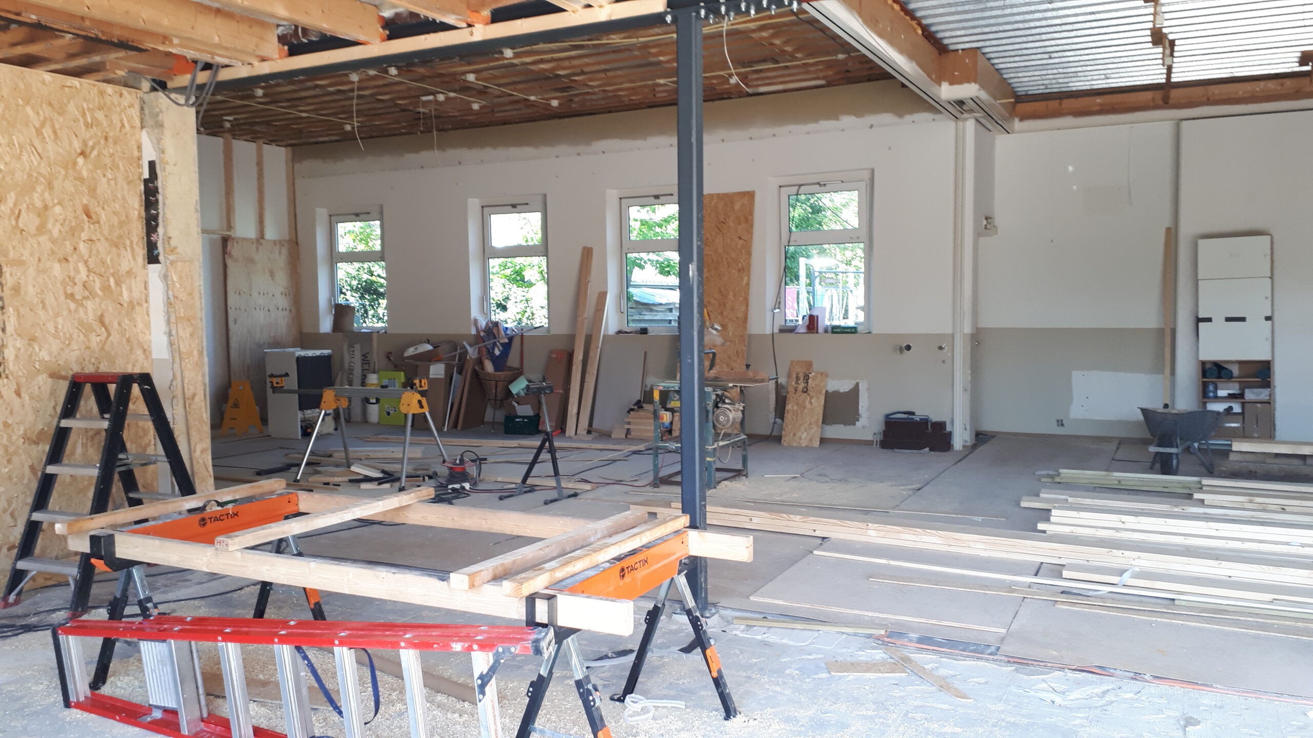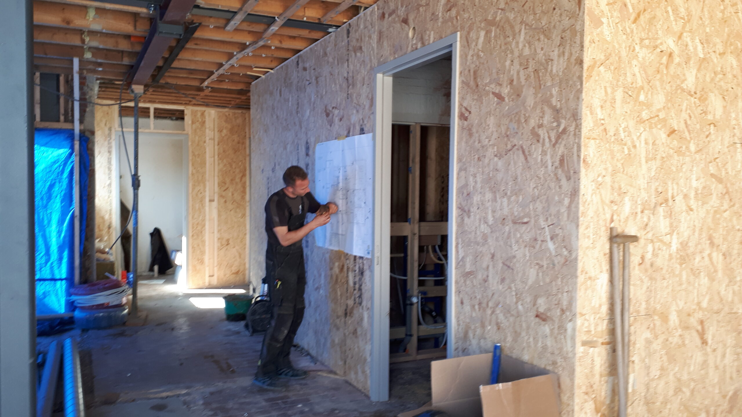 De foto’s geven een mooi beeld van de voortgang van de verbouwing, zowel beneden door bouwbedrijf Agricola en installatiebedrijf Sikma als boven door een groep vrijwilligers.