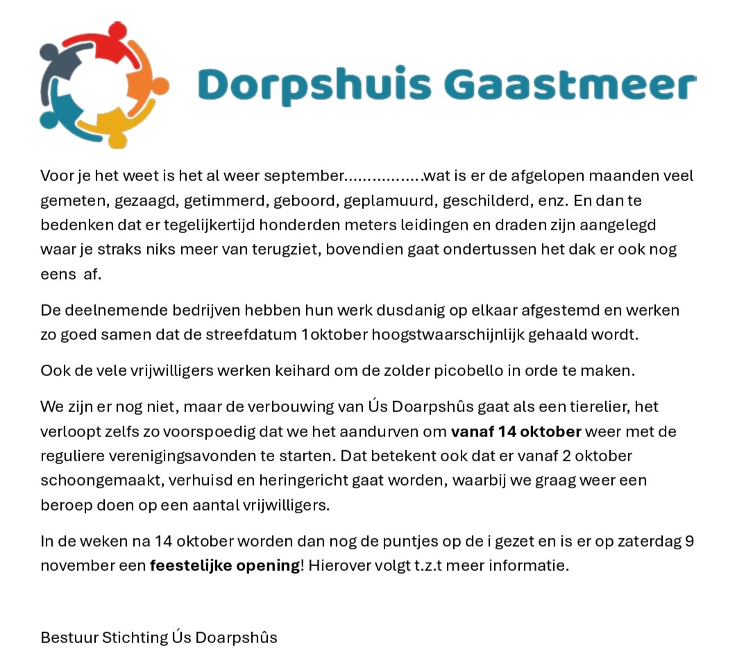 Verbouwing Ús Doarpshûs nadert voltooiing: Feestelijke opening in zicht!